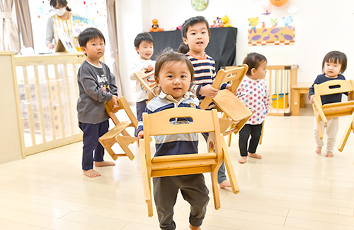 誰かが自分を見ていてくれるという安心感は、子どもたちの精神的な安定になります。集団生活だからこそ周りを見て変化に気づく、周りから気づいてもらう、そんな支え合う温かい空間を大切にしていきます。